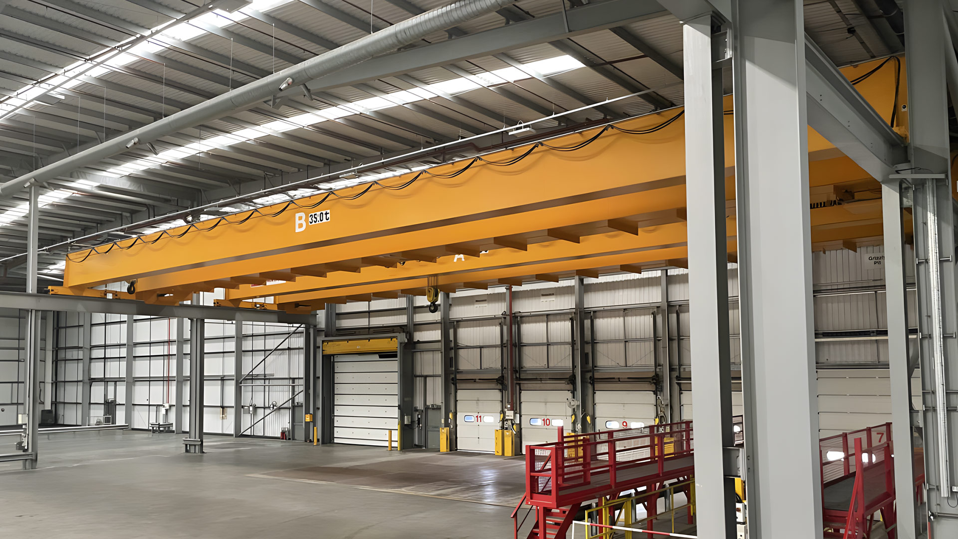 根據(jù)起吊貨物的不同,起重機(jī)可配備吊梁磁鐵或電磁吸盤(pán)或抓斗或C型鉤;