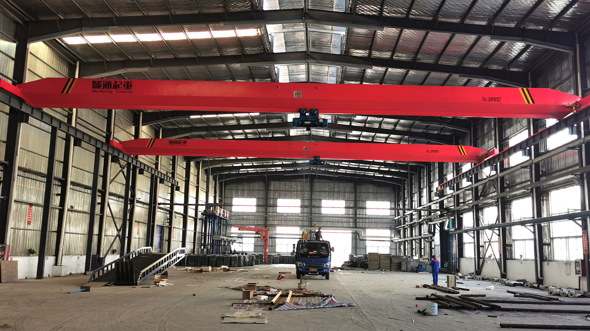 LD型電動單梁起重機(jī)主要由起重機(jī)主梁橋架、鋼絲繩電動葫蘆、大車運(yùn)行機(jī)構(gòu)以及電氣系統(tǒng)四個(gè)部分組成,具有安裝方便,高效運(yùn)輸?shù)奶攸c(diǎn)。運(yùn)行機(jī)構(gòu)采用分別驅(qū)動形式,配置三合一運(yùn)行電機(jī),性能穩(wěn)定,低噪運(yùn)行;橋架主梁采用由熱軋卷板經(jīng)卷板校平剪切生產(chǎn)線下料成整張腹板,并與工字鋼拼焊成實(shí)腹梁;端梁則由鋼板經(jīng)激光切割整體下料成型,再拼焊組裝車輪完成;起升機(jī)構(gòu)由性能穩(wěn)定的鋼絲繩電動葫蘆組成,能夠平穩(wěn)起升吊運(yùn)重物,并可以沿著主梁橫向移動;大車運(yùn)行機(jī)構(gòu)采用三合一驅(qū)動電機(jī),裝配緊密,運(yùn)行無噪音。同時(shí)采用國內(nèi)知名品牌扁電纜,保證供電安全穩(wěn)定。