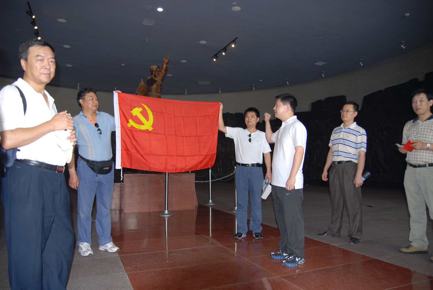 最后在淮海戰(zhàn)役紀(jì)念館前,預(yù)備黨員面隊(duì)著中國共產(chǎn)黨黨旗,緊握右拳,舉起手臂進(jìn)行了莊嚴(yán)的入黨宣誓,老黨員重溫入黨誓詞。不少同志拍下了許多照片來紀(jì)念這次有意義的活動(dòng),最后全體黨員同志在淮海戰(zhàn)役紀(jì)念碑前合影以留念。