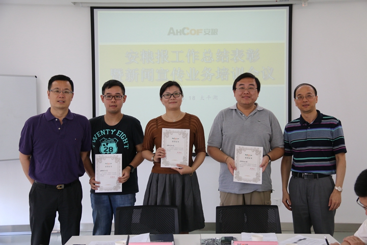 《安糧報(bào)》主編沈瑞勇首先匯報(bào)了《安糧報(bào)》創(chuàng)刊三年來(lái)的工作,執(zhí)行總編潘冬生宣讀了《關(guān)于表彰安糧報(bào)優(yōu)秀通訊員、優(yōu)秀編輯和先進(jìn)集體的決定》,安糧實(shí)業(yè)辦公室、安糧地產(chǎn)辦公室、安糧期貨辦公室三部門(mén)榮獲“先進(jìn)集體”稱號(hào);趙春進(jìn)、徐婷、陳凱、丁紹龍4人獲評(píng)“優(yōu)秀通訊員”;仲勁松、陶海燕2人獲評(píng)“優(yōu)秀編輯”。會(huì)議決定增補(bǔ)方嘉亮、李秀芳為《安糧報(bào)》編委會(huì)成員并明確了《安糧報(bào)》通訊員名單和通訊員工作職責(zé)。