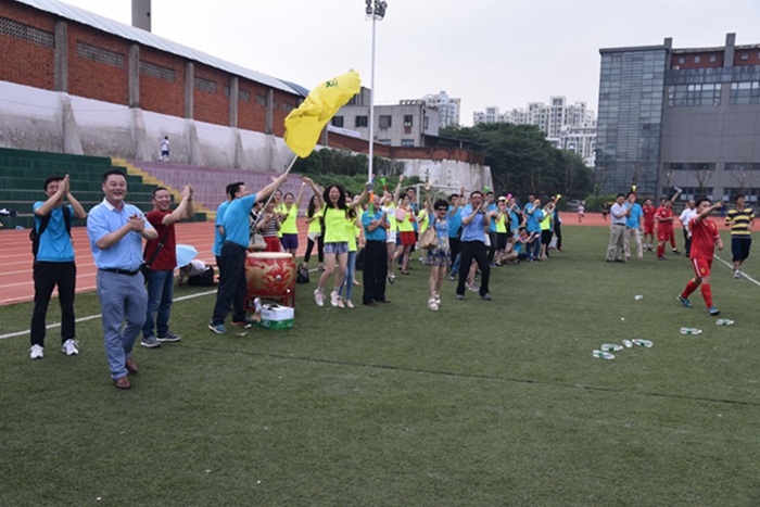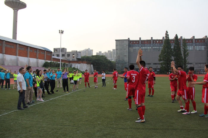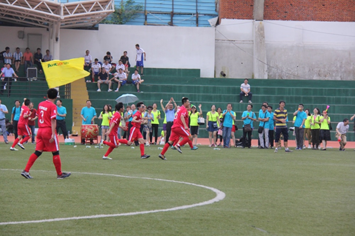 下午四點(diǎn)比賽準(zhǔn)時(shí)開始,國(guó)貿(mào)集團(tuán)范陽董事長(zhǎng)親臨現(xiàn)場(chǎng),安糧集團(tuán)領(lǐng)導(dǎo)孫毅、周洪以及其他安糧板塊公司領(lǐng)導(dǎo)也前往現(xiàn)場(chǎng)為健兒們加油。比賽哨聲吹響,技術(shù)公司便展開了猛烈的主動(dòng)進(jìn)攻,不過安糧健兒早已看透對(duì)手的心思,按賽前部署積極應(yīng)對(duì),對(duì)方雖然攻勢(shì)兇猛,但并沒有獲得很好的機(jī)會(huì)。在頂住技術(shù)公司的攻勢(shì)之后,我方開始控制局面,組織進(jìn)攻。開賽20分鐘,我方進(jìn)攻獲得角球,隊(duì)長(zhǎng)、來自安糧實(shí)業(yè)的方波角球開出,準(zhǔn)確找到后點(diǎn)的來自安糧置地的侯立峰,后者高高躍起,力壓防守隊(duì)員,將球砸進(jìn)對(duì)方大門,1:0我方領(lǐng)先。第二節(jié),安糧代表隊(duì)攻勢(shì)不減,對(duì)手也開始瘋狂反撲,雙方對(duì)攻,場(chǎng)面極度緊張,場(chǎng)下吶喊聲不斷。臨近尾聲,來自安糧地產(chǎn)的劉偉健中前場(chǎng)做球,來自合肥建工的吳鴻儒中圈左側(cè)向禁區(qū)內(nèi)起球,對(duì)方門將出擊脫手,剛剛上場(chǎng)不久的來自安糧地產(chǎn)的施禮嗅覺靈敏,背對(duì)球門倒掛金鉤,打進(jìn)本屆足球賽的最為精彩的入球。這個(gè)進(jìn)球讓安糧的球員們一掃前兩場(chǎng)不勝的陰霾,興奮不已。帶著兩球優(yōu)勢(shì),安糧健兒們進(jìn)入最后一節(jié)的拼殺,技術(shù)公司也沒有放棄,并獲得點(diǎn)球機(jī)會(huì),但是急躁的心理導(dǎo)致點(diǎn)球發(fā)失。比賽尾聲,技術(shù)公司扳回一球,但時(shí)間已所剩無幾。最終安糧2:1力克技術(shù),雙方為大家奉獻(xiàn)了一場(chǎng)非常精彩的比賽,本次國(guó)貿(mào)集團(tuán)“安天利信杯”足球賽圓滿落幕。