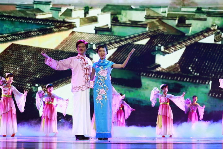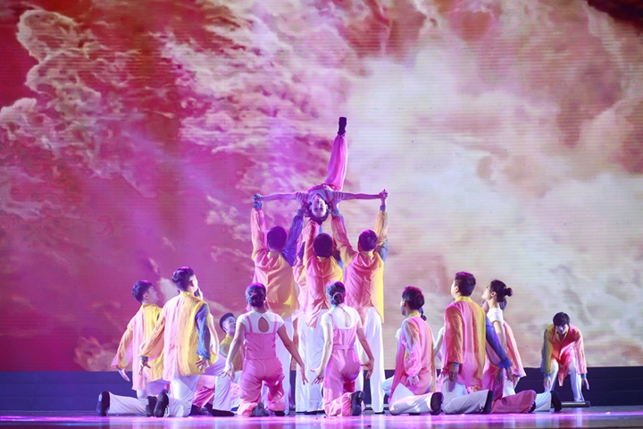 表彰結(jié)束后,安糧200余名員工獻上了悉心準(zhǔn)備、精彩紛呈的文藝演出。演出以“乘風(fēng)追夢”、“逐夢新生”、“夢想騰飛”三個篇章呼應(yīng)安糧集團四十年的歷史,涵蓋傳統(tǒng)黃梅歌舞、情景舞蹈、現(xiàn)代舞蹈、情景劇、器樂演奏以及安糧、控股領(lǐng)導(dǎo)班子參演的詩朗誦等不同風(fēng)格的節(jié)目。安糧員工曼妙的舞姿、出色的演技、動情的演繹折服了在場的觀眾,一次次將演出推向高潮,現(xiàn)場掌聲迭起。慶典在描寫安糧蓬勃發(fā)展,永續(xù)輝煌的大型歌舞《新征程 新希望》中落下帷幕,安糧集團成立四十周年慶典圓滿結(jié)束,安糧集團四十周年系列慶祝活動至此畫上圓滿的句號。
