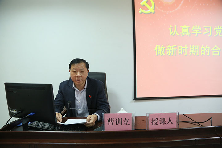 第二部分由安糧集團黨委委員曹訓(xùn)立講授《認真學(xué)習(xí)黨章,做新時期的合格黨員》的講座,他依據(jù)“兩學(xué)一做”具體要求,針對黨員“四講四有”標(biāo)準(zhǔn),結(jié)合公司實際,引經(jīng)據(jù)典、旁征博引,與大家分享做一名合格黨員就是要做到“忠誠、干凈、擔(dān)當(dāng)”的六字箴言。