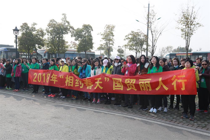 安糧麗人們早上七點(diǎn)從盛安廣場乘車前往巢湖長臨河古鎮(zhèn)。9時許,參加活動的四百多名麗人陸續(xù)抵達(dá)長臨河古鎮(zhèn)停車場集合,國貿(mào)集團(tuán)總經(jīng)理助理呂蓓為活動致開幕詞,國貿(mào)集團(tuán)團(tuán)委書記陳婕擔(dān)任活動旗手,接過“相約春天”的活動旗幟。隨后“行者俱樂部”的教練們帶領(lǐng)麗人們進(jìn)行活動前的舞蹈熱身。隨著一聲清脆的發(fā)令槍聲,四百多麗人開始了春天美麗的行程。