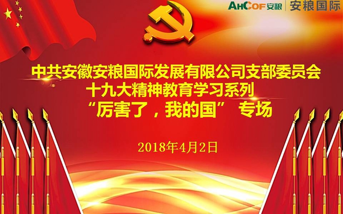 2018年4月2日,為深入開展十九大會議精神教育學(xué)習(xí),豐富黨員活動日形式,安糧國際黨支部組織黨員、團員集中觀看大型紀錄電影《厲害了,我的國》。