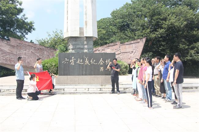 參觀完革命舊址群,頂著烈日和30多度的高溫,攀登144級(jí)臺(tái)階,大家來(lái)到了鄧小平親筆題寫的六霍起義紀(jì)念塔,在支部宣傳委員兼紀(jì)檢委員、副總經(jīng)理陳建軍帶領(lǐng)下,大家面對(duì)黨旗和紀(jì)念塔進(jìn)行了莊嚴(yán)的宣誓活動(dòng)。