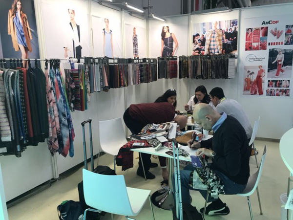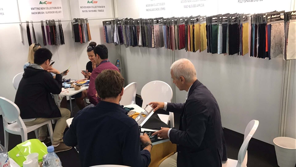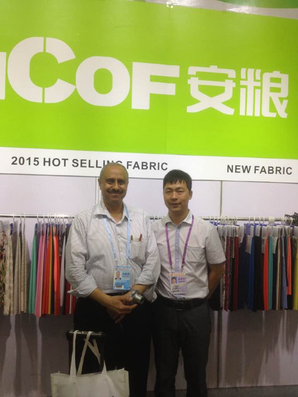 去過廣交會的同事們都知道,廣交會每天的參展任務(wù)是異常繁忙且辛苦的。51日國際勞動節(jié),也是廣交會三期開展的第一天,位于15.4號館主通道旁邊的安糧紡織品展位人流如織,云集的客商都被展位上精心挑選、花樣繁多的樣品所吸引。面料中晶晶閃閃的亮片、時尚FASHION的提花剪花格外受到客人們的青睞,單朋朋和同事們身邊圍滿了膚色各異的外國客商,他們既熱情又耐心地與每一位客商溝通,介紹產(chǎn)品信息、核算價格并及時登記記錄,便于展會后的持續(xù)跟進(jìn),展位上一片熱火朝天。
