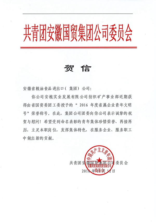 對于小伙伴們來說,家人們做出的犧牲成為了最堅強(qiáng)的后盾,加上公司領(lǐng)導(dǎo)的關(guān)懷和鼓勵,給了整個團(tuán)隊(duì)巨大的拼搏動力,他們擼起袖子加油干,全心全意撲在工作上,最近流行的“996”對他們來說早就是家常便飯,即便是周日也隨時待命。在大家的共同努力下,短短幾年的時間,紡織品的年出口額從金融危機(jī)后的一千多萬美元上升到目前將近五千萬美元。2016年,安糧實(shí)業(yè)紡織品團(tuán)隊(duì)被省國資委團(tuán)工委評為“省屬企業(yè)青年文明號”,這也是安糧系統(tǒng)首個獲此殊榮的集體,辛勤的付出終于結(jié)出累累碩果。