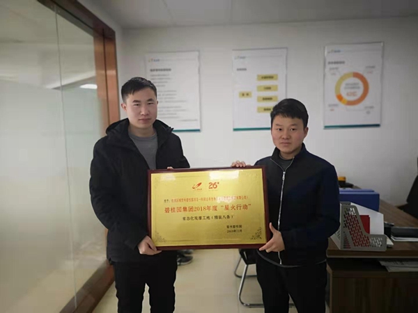 楊勇同志(右)代表團(tuán)隊(duì)領(lǐng)取碧桂園“星火行動(dòng)”觀摩工地獎(jiǎng)