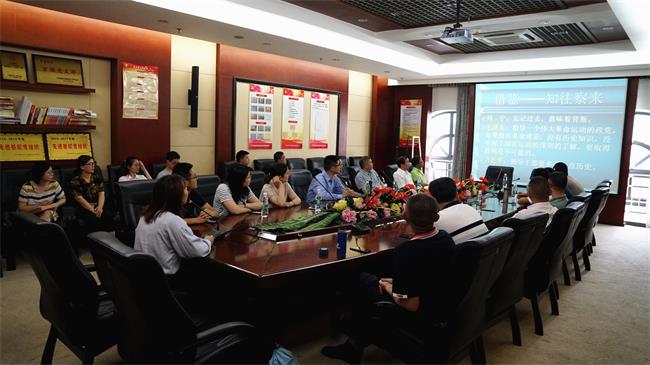 參觀結(jié)束后,實業(yè)黨支部特邀南昌市委黨?;A(chǔ)理論教研部副主任趙坤教授為參加活動的全體黨員在紀念館黨員活動室就地上了一堂主題為“重溫紅色經(jīng)典,深入學習四個意識、四個自信、兩個維護核心精神”的現(xiàn)場黨課,既詳實又生動地介紹了江西這片紅色土地上的革命歷史,從黨史的視角梳理了“四個意識”、“四個自信”、“兩個維護”的重要性和迫切性,進一步領(lǐng)會了習總書記關(guān)于推進紅色基因傳承的要求。