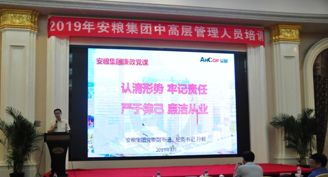 為深入推進(jìn)“不忘初心、牢記使命”主題教育,深化落實(shí) “三個(gè)以案”教育,8月16日至17日,安糧集團(tuán)黨委副書記、紀(jì)委書記孫毅在安糧集團(tuán)2019年中高層管理人員培訓(xùn)期間,為參加學(xué)習(xí)的安糧集團(tuán)、控股本部及貿(mào)易、建工兩大板塊的120多名黨員干部講授題為《認(rèn)清形勢 牢記責(zé)任 嚴(yán)于律己 廉潔從業(yè)》專題廉政黨課。