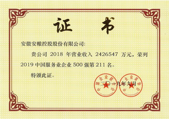 安糧控股位列2019中國服務(wù)業(yè)企業(yè)500強第211位