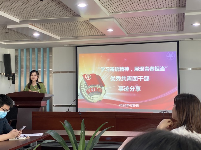 “省屬企業(yè)優(yōu)秀共青團干”稱號獲得者、安糧國際團支部副書記兼組織委員趙夢晶同志進行優(yōu)秀事跡分享。她結(jié)合在共青團工作經(jīng)歷和自身感悟鼓勵青年團員們積極擔當,踏實做事,在團員青年中引起了強烈的反響和共鳴。隨后與會人員共同觀看了由安糧青年員工精心編排參演的慶祝新中國成立70周年、五四運動100周年主題情景劇《使命的接力》。