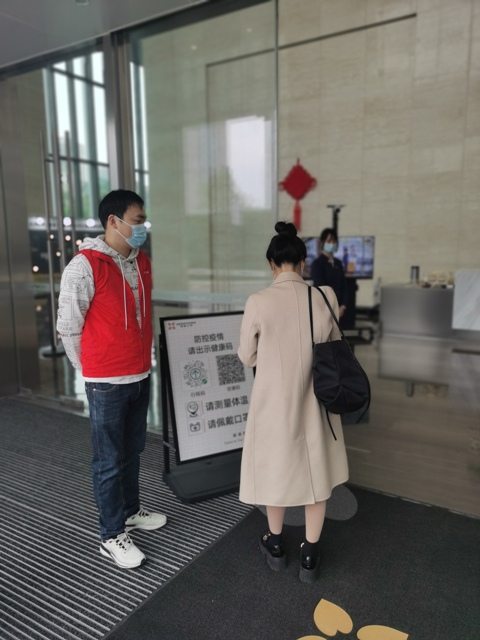 面對突如其來的新一輪嚴(yán)峻疫情,早高峰時期員工進(jìn)入大樓前的雙碼核驗(yàn)和測量體溫工作,導(dǎo)致在入口處排起長隊(duì),影響同事們按時到崗,這給安糧中心物業(yè)管理帶來了難題。安糧團(tuán)委在集團(tuán)黨委的指示下聞令而動、迅速集結(jié),來自集團(tuán)團(tuán)委各下屬支部的團(tuán)員青年志愿者們,在做好個人防護(hù)的基礎(chǔ)上,穿起“紅馬甲”,主動申請投身到疫情防控工作中,大大加快了早高峰通行效率。