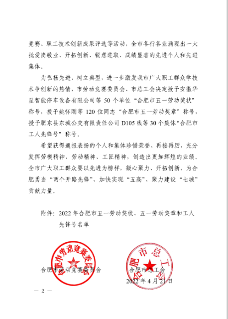 5月1日,合肥市勞動競賽委員會、合肥市總工會聯(lián)合發(fā)布《關(guān)于授予2022年“合肥市五一勞動獎狀、合肥市五一勞動獎?wù)?、合肥市工人先鋒號”稱號的通報》,合肥建工辦公室主任張海東榮獲2022年“合肥市五一勞動獎?wù)隆狈Q號。