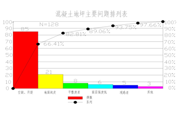 2021年6月開始室內(nèi)地坪的施工,在最初對地坪施工質(zhì)量的檢查中發(fā)現(xiàn),其一次性驗(yàn)收合格率僅為85.7%,還有較大的提升空間。項(xiàng)目團(tuán)隊(duì)經(jīng)過研討后,確定本次的QC活動課題為《提高室內(nèi)混凝土地坪施工一次性合格率》。隨后QC小組迅速展開工作,對項(xiàng)目已施工的 8#、10#、12#樓地坪質(zhì)量進(jìn)行檢查,并對檢查的900個(gè)檢查點(diǎn)的數(shù)據(jù)進(jìn)行分析,發(fā)現(xiàn)空鼓、開裂是混凝土地坪的主要質(zhì)量缺陷。