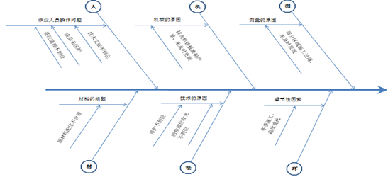 圍繞著“空鼓”和“開裂”兩項(xiàng)主要缺陷,小組成員對整個(gè)施工流程進(jìn)行旁站,深入各個(gè)流程進(jìn)行檢查,召開分析會,運(yùn)用因素分析法從“5M1E”6個(gè)方面進(jìn)行分析、歸納出10項(xiàng)末端因素。