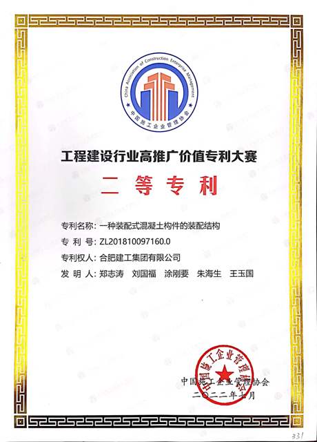 7月29日,中國(guó)施工企業(yè)管理協(xié)會(huì)公布了“第二屆工程建設(shè)行業(yè)高推廣價(jià)值專利大賽”評(píng)選結(jié)果,合肥建工“一種裝配式混凝土構(gòu)件的裝配結(jié)構(gòu)”發(fā)明專利榮獲大賽二等獎(jiǎng)。