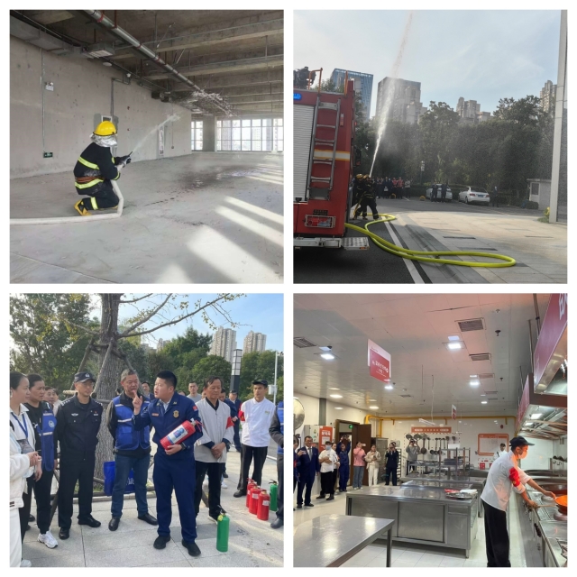 下午3時,消防應急演練總指揮下達演練開始指令。工作人員在預定地點放置煙霧彈,觸發(fā)火災報警,模擬火情發(fā)生場景。安糧中心辦公樓火警警報鳴響,全體職工迅速進入緊急疏散狀態(tài),各樓層消防和應急救援隊員迅速反應,有序引導職工從安全出口撤離到避難層。同時,消防隊員全副武裝,封控火場、撲滅火災。在火警解除后,救援大隊隊員開展滅火器使用教學、油鍋起火的預防和撲救等內容,參與演習的物業(yè)、餐飲安全員們分別用不同的方式進行滅火實操,切身感受了正解與錯誤滅火的后果。
