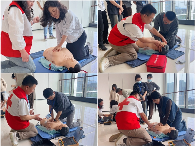 活動緊扣“學技能、強擔當、踐初心”目標,精心設置標準化急救技能培訓課程。在安徽省紅十字會專業(yè)講師的指導下,黨員同志們學習了心肺復蘇(CPR)、自動體外除顫儀(AED)操作、創(chuàng)傷止血包扎、氣道異物梗阻處理等核心急救技術。針對心梗、腦卒中早期識別及燒燙傷應急處置等日常生活中常見的突發(fā)場景,講師也進行了專項教學。課程采用理論講解與實操演示相結合的模式,借助模擬人體設備逐項分解急救動作要領,確保參訓黨員能夠掌握規(guī)范、科學的急救流程。