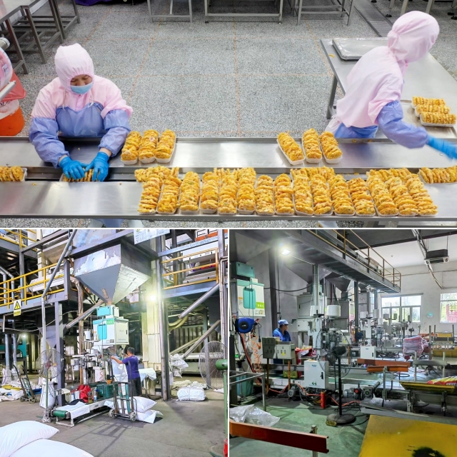 穩(wěn)定生產(chǎn),保障市場供應(yīng):盡管面臨高溫挑戰(zhàn),但工廠的生產(chǎn)熱情絲毫不減,全力保障市場供應(yīng)。在車間內(nèi),生產(chǎn)線上一片繁忙景象,工人們精神飽滿地堅(jiān)守在各自崗位上。各工廠通過優(yōu)化生產(chǎn)流程、合理安排生產(chǎn)任務(wù)等方式,提高生產(chǎn)效率。比如,巢湖嘉誼充分發(fā)揮自身生產(chǎn)線的優(yōu)勢,在保障產(chǎn)品質(zhì)量的同時,提升蝦餅、玉米烙等產(chǎn)品的生產(chǎn)速度,滿足市場需求。同時,各工廠積極與供應(yīng)商和客戶溝通協(xié)調(diào),確保原材料供應(yīng)穩(wěn)定和產(chǎn)品及時配送,為市場提供充足的食品供應(yīng)。